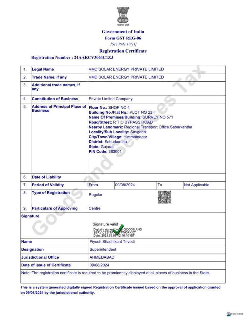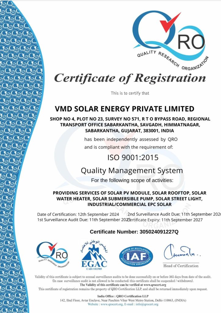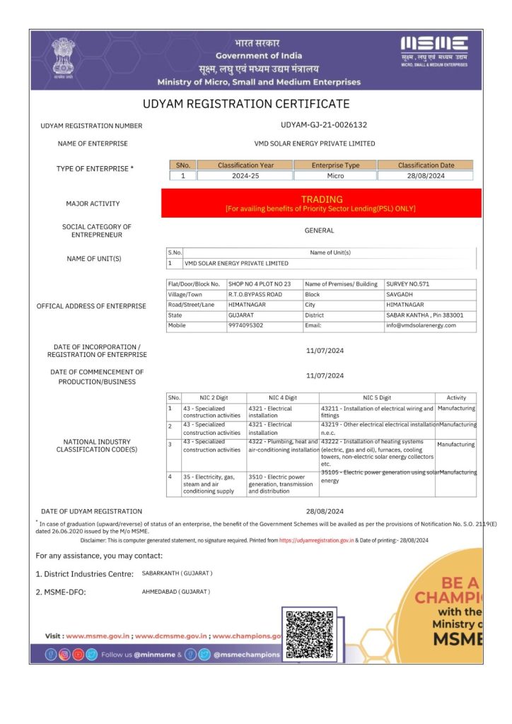 VMD Solar Energy Private Limited, commenced its business with a single objective of accelerating the adoption and growth of solar power systems across the world, not only for its obvious environmental benefits but more importantly the economic benefits to its clients.